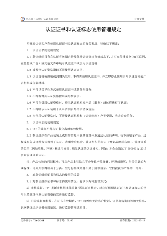 TXY-GK-08_01.00 认证证书和认证标志使用管理规定