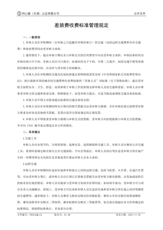 差旅费收费标准管理规定